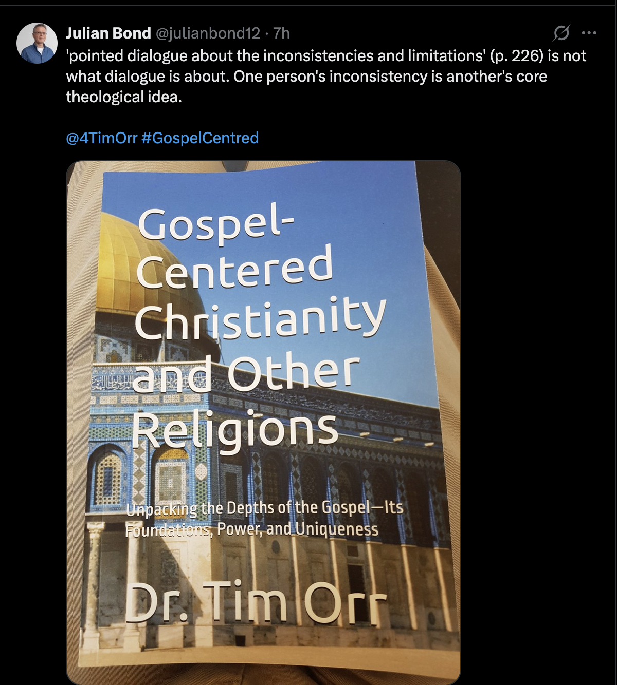 So when Bond critiques my book, it’s important to recognize that we’re not just working from different conclusions—we’re working from fundamentally different starting points. His approach emphasizes coexistence, shared spirituality, and minimizing sharp theological distinctions. Mine is grounded in the conviction that the gospel is not just one option among many—the good news reveals the truth about God, sin, and salvation.